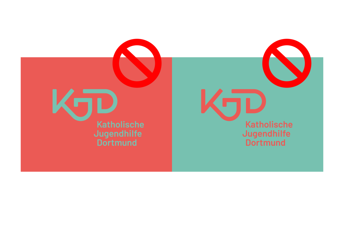 Das Logo steht niemals in einer anderen Farbe als weiß auf Farbflächen.
