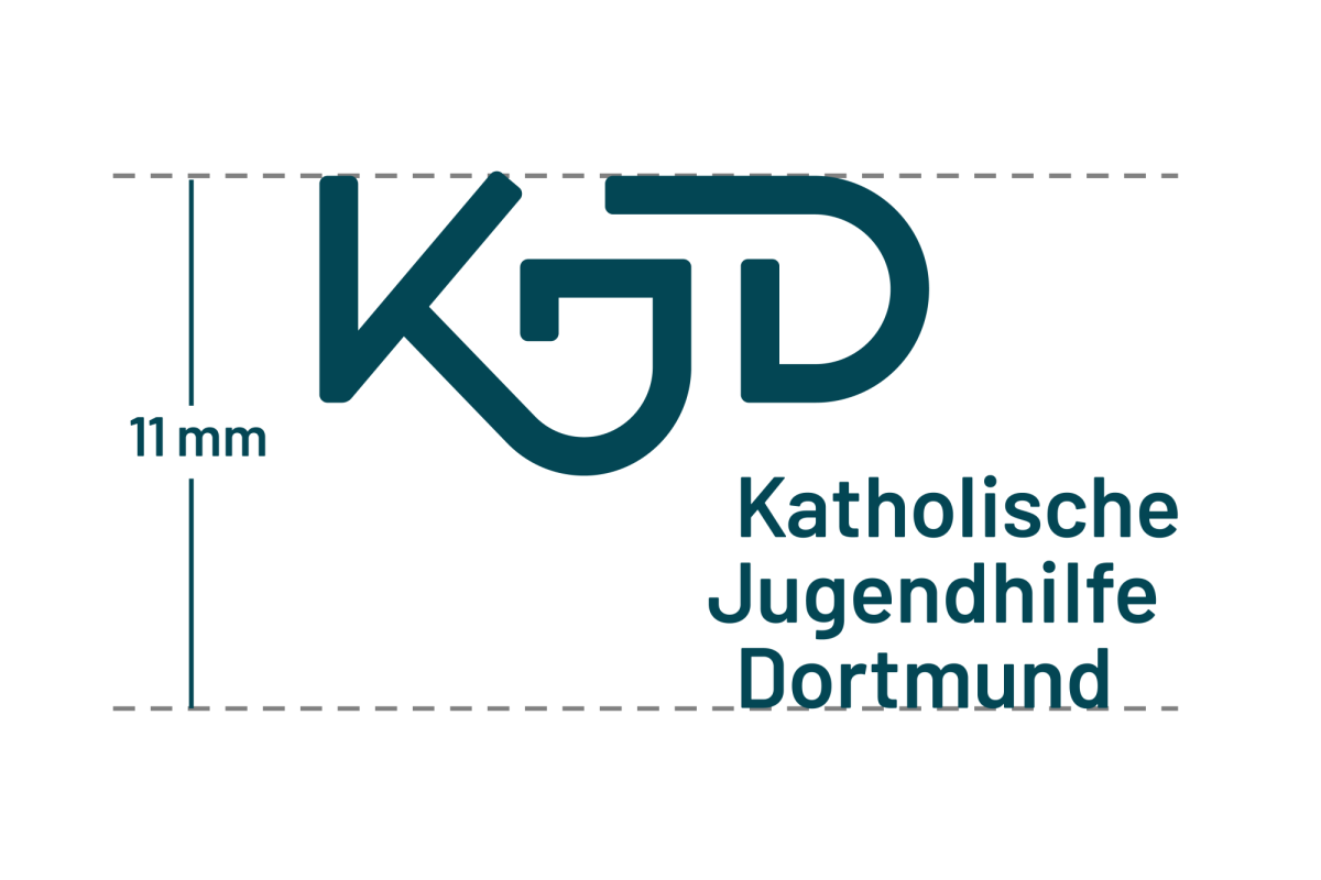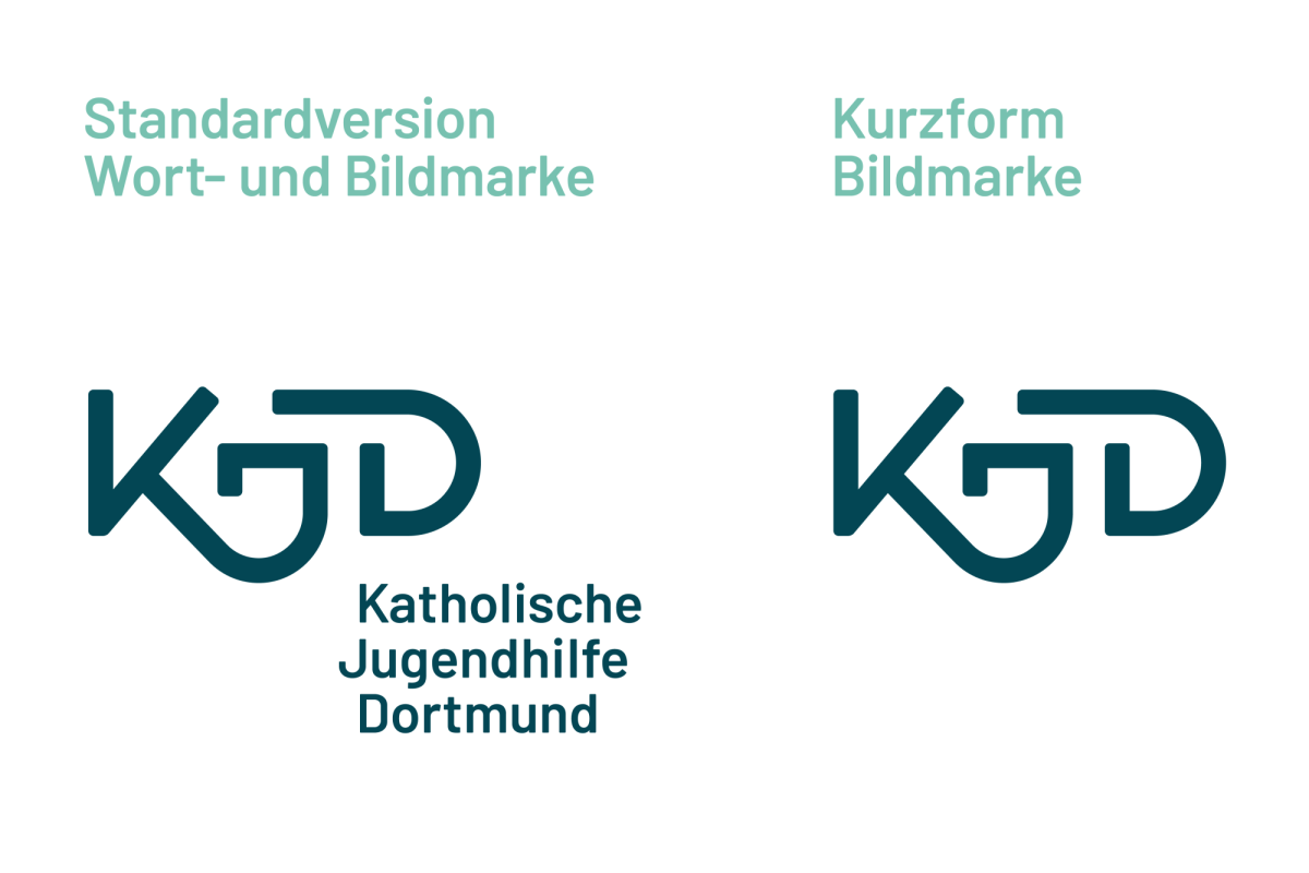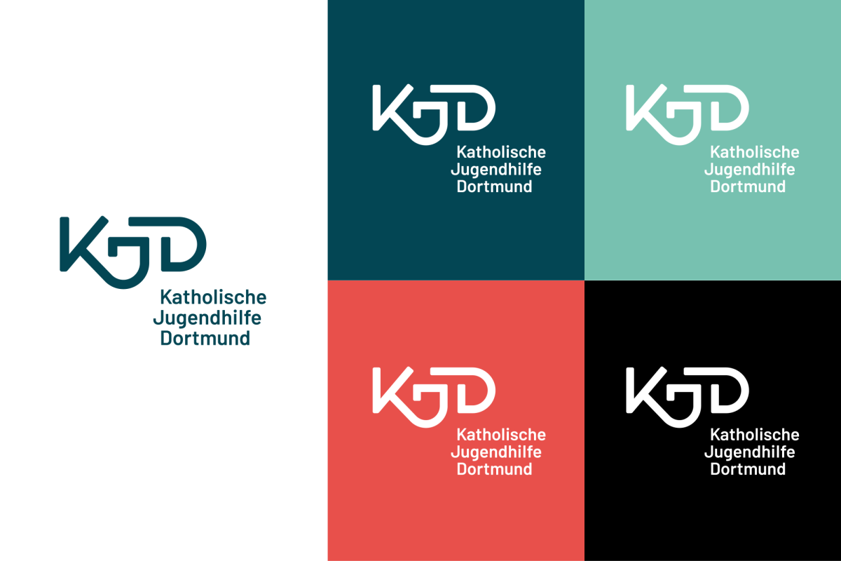 Das Logo von KJD setzt sich aus den drei Anfangsbuchstaben der Katholischen Jugendhilfe Dortmund zusammen.