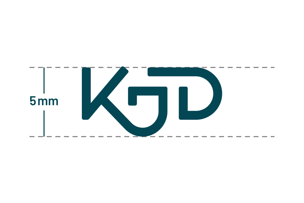 Das Logo mit Firmierung sollte eine Mindestgröße von 11mm nicht unterschreiten, da sonst die Lesbarkeit der Unterzeilen nicht gewährleistet ist. Die Größe bezieht sich auf den Abstand zwischen der Oberkante und der Unterkante des Logos, nicht auf den Schutzraum.