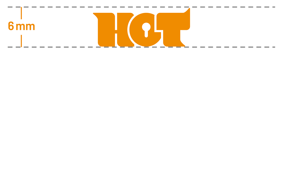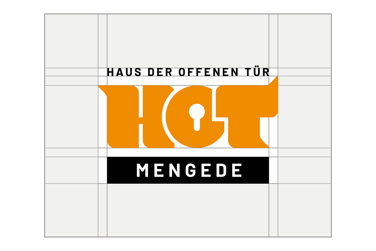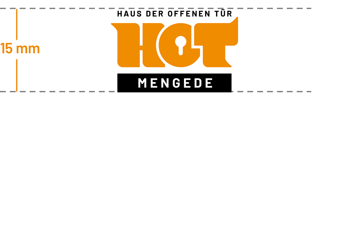 Das Logo mit dem Zusatz ›Haus der offenen Tür‹ sollte eine Mindestgröße von 15 mm nicht unterschreiten. Die Größe bezieht sich auf den Abstand zwischen der Oberkante und der Unterkante des Logos, nicht auf den Schutzraum.