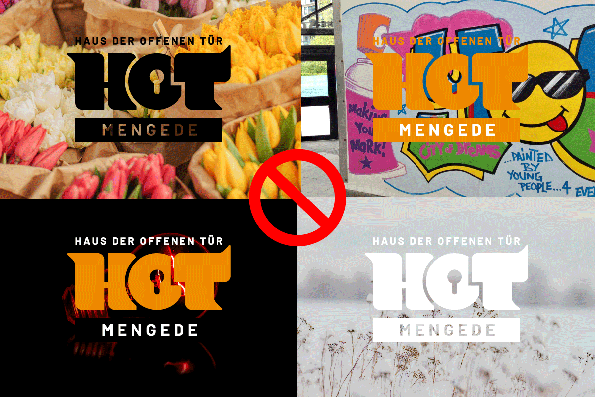 Ebenso muss bei der Hintergrundwahl auf ausreichenden Kontrast und ruhiger Fläche geachtet werden. Bei der Abbildung auf Bildern, sollte bei Bedarf das Logo ohne Kopfzeile genutzt werden, da dieses deutlich stabiler auf unruhigen Flächen steht.